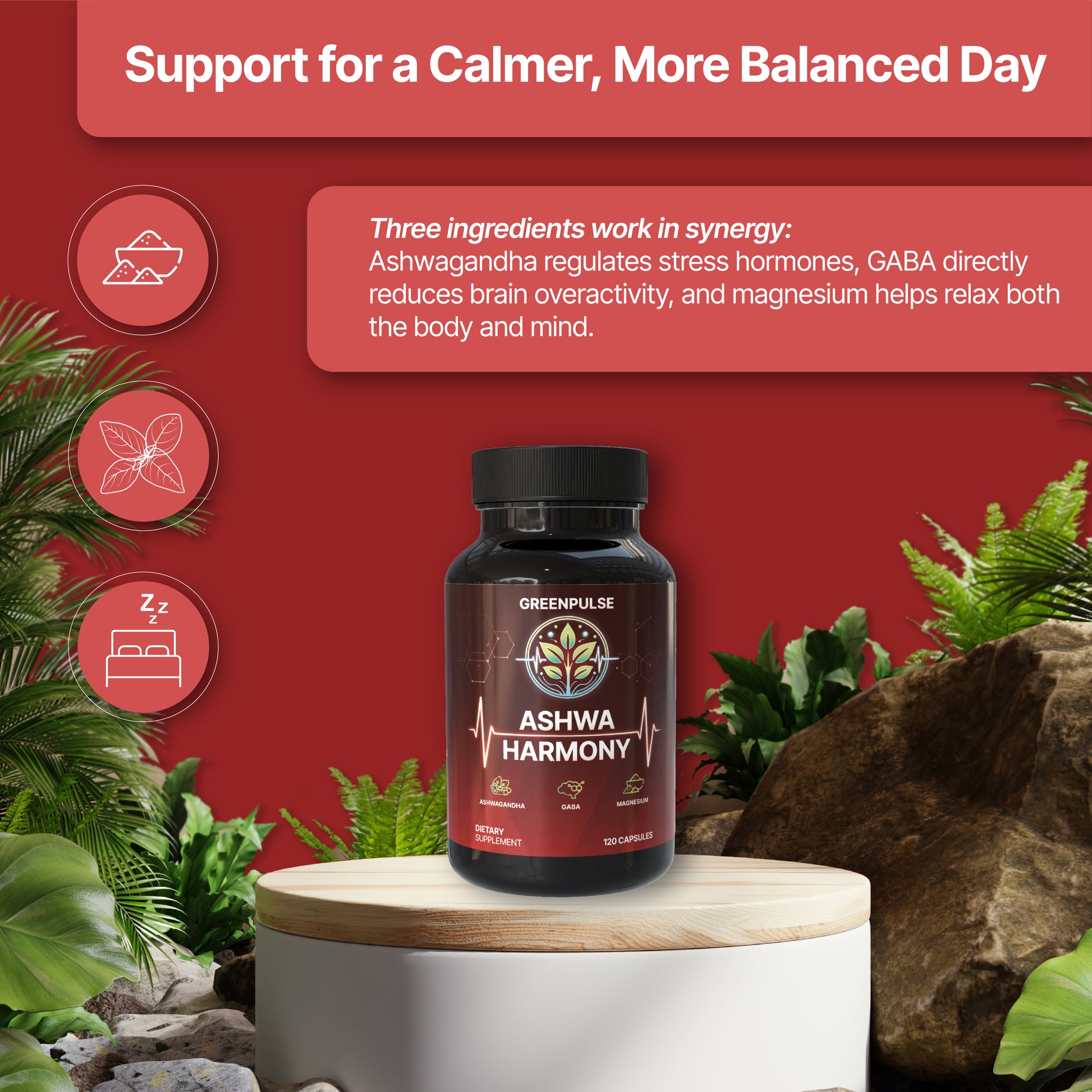 Ashwa Harmony – Adaptogenic Blend with Ashwagandha, GABA, Magnesium Glycinate for Relaxation, Resilience & Calm - 120 capsules