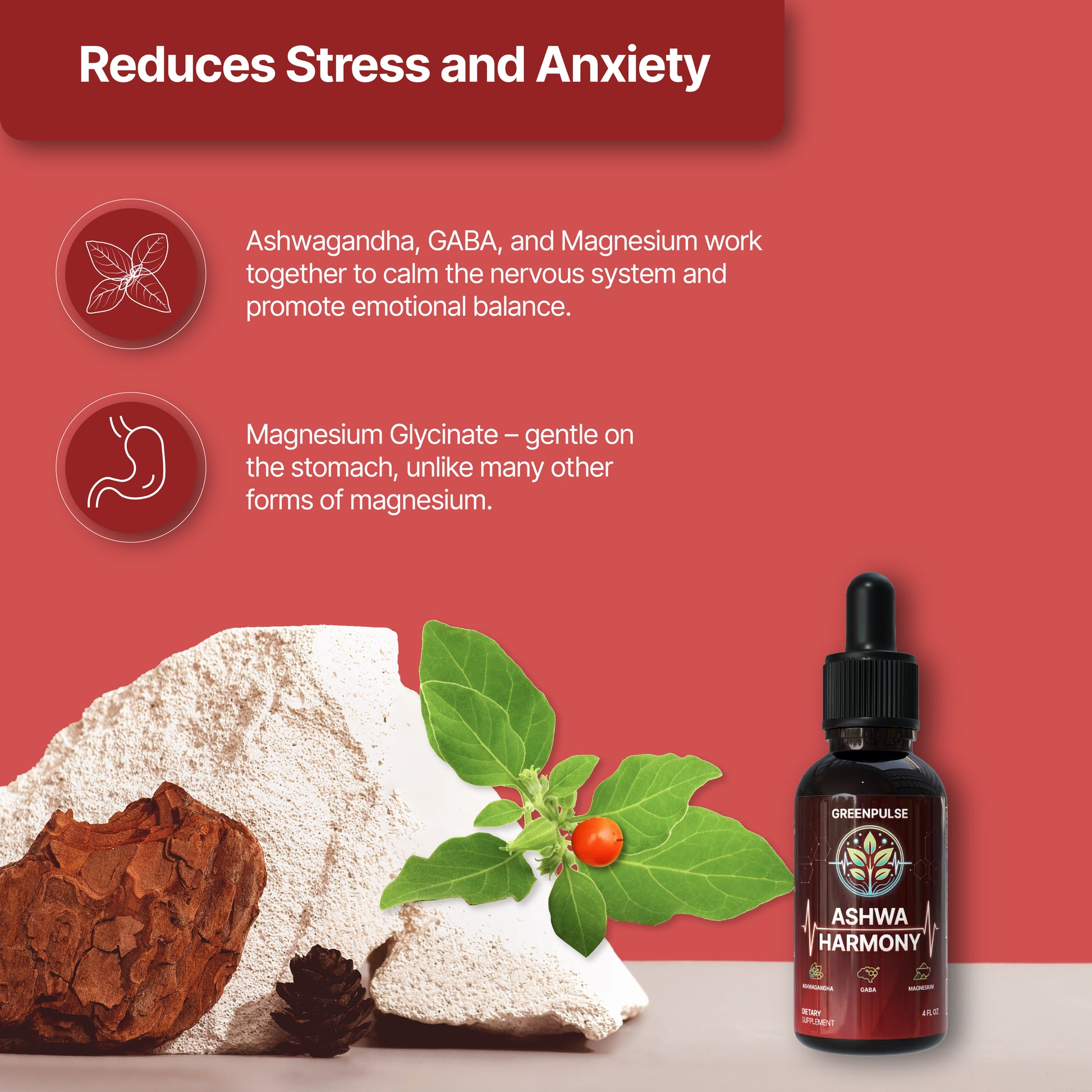 Ashwa Harmony – Adaptogenic Blend with Ashwaghanda, GABA, Magnesiuym Glycinate for Relaxation, Resilience & Calm - 4 fl oz